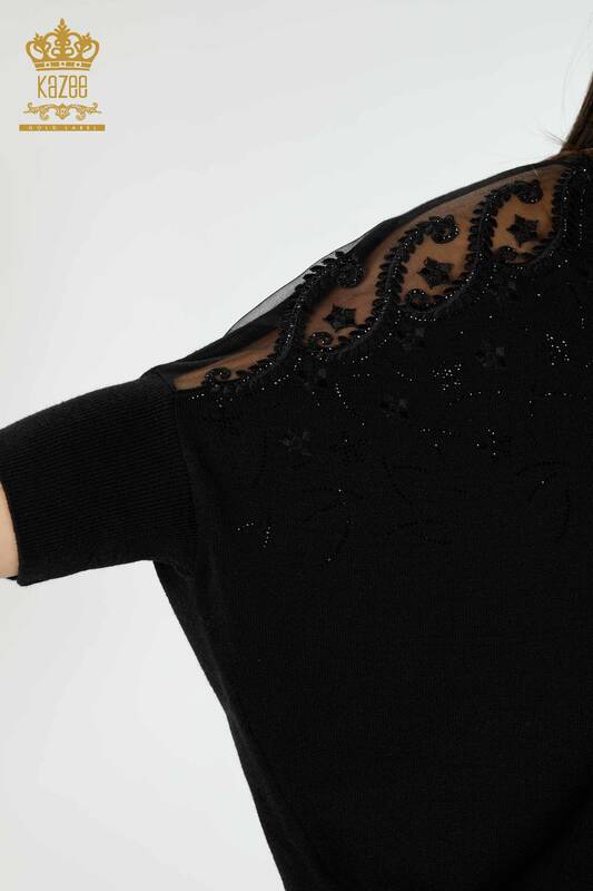 Maglione di maglieria delle donne all'ingrosso modellato pietra ricamato nero-16826 / KAZEE