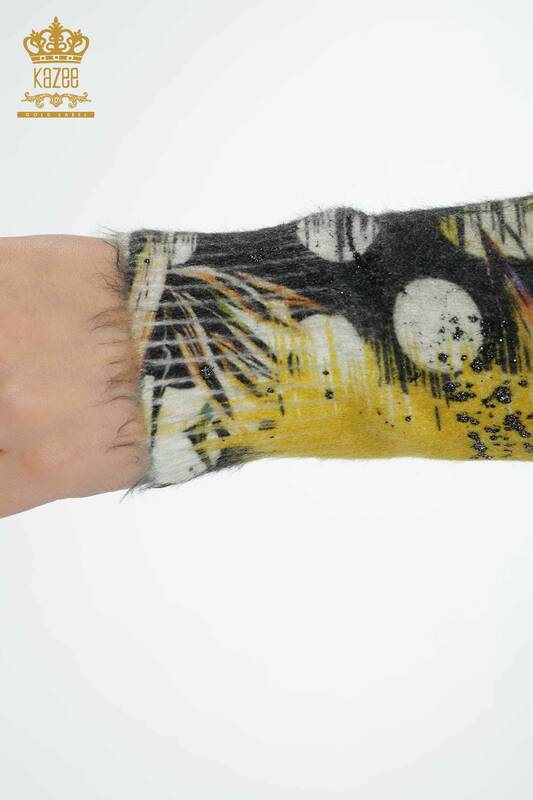 Maglione delle donne all'ingrosso con pietra ricamo Angora stampa digitale Safran -16003 / KAZEE