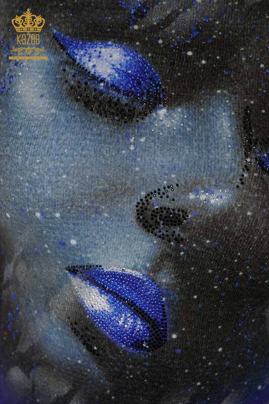 Maglione delle donne all'ingrosso con pietra ricamato modello Angora Saks -16001 / KAZEE