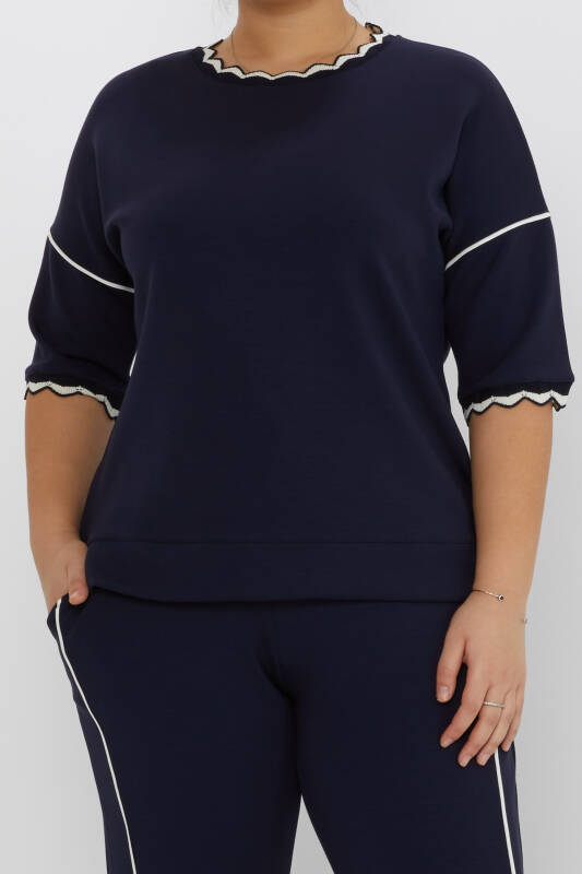 Conjunto de chándal con detalle bordado y manga corta azul marino - 17865 | KAZEE (Juego de 3 tallas L-XL-2XL)