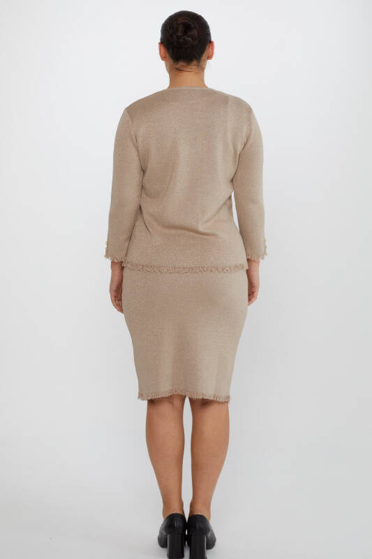 Costum dublu cu ciucuri cu nasturi Bej - 30868 | KAZEE (Set de 4 M-L-XL-2XL)