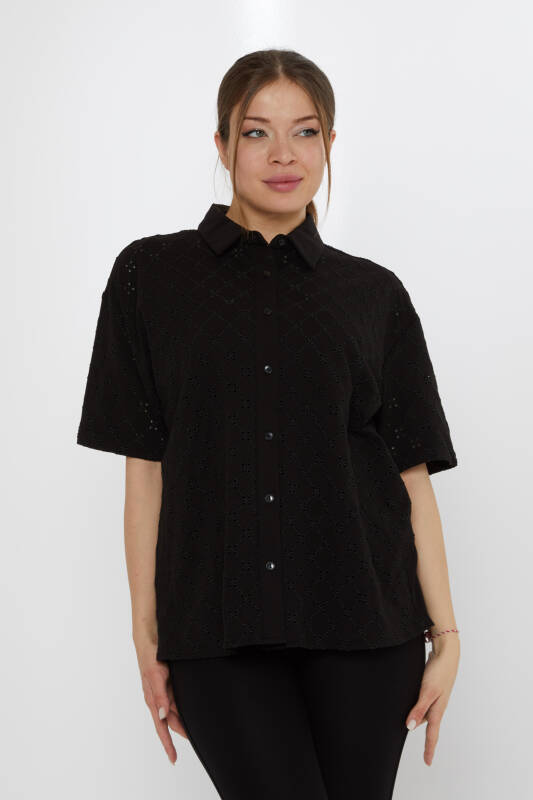 Chemise boutonnée avec détails troués noire - 20505 | KAZEE (Lot de 3 40-42-44)