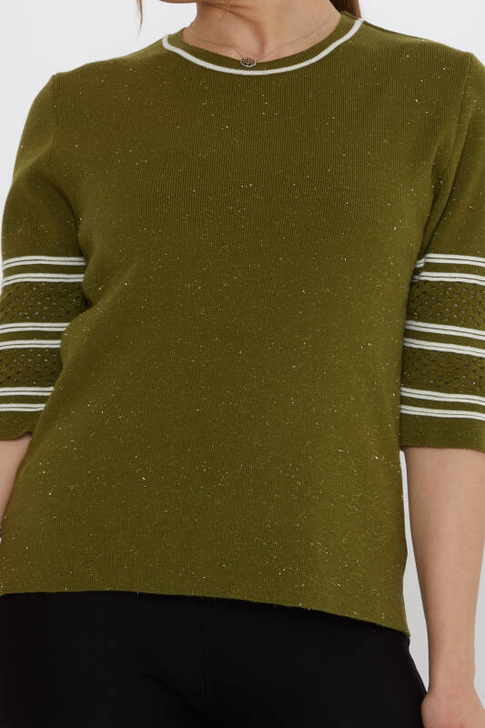 Трикотажный свитер с отделкой на рукавах, блестящий темно-зеленый - 31316 | KAZEE (Набор из 3 шт. M-L-XL)