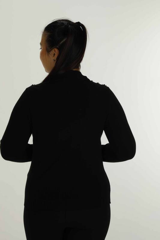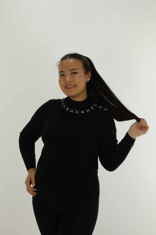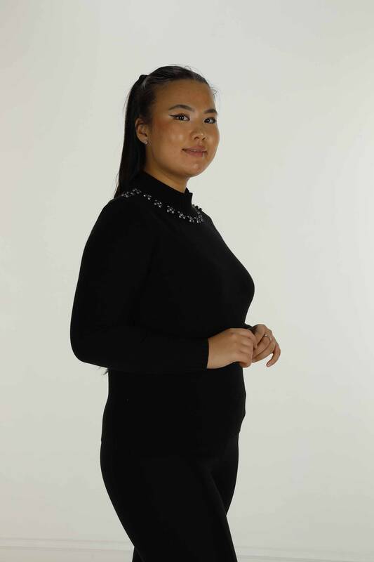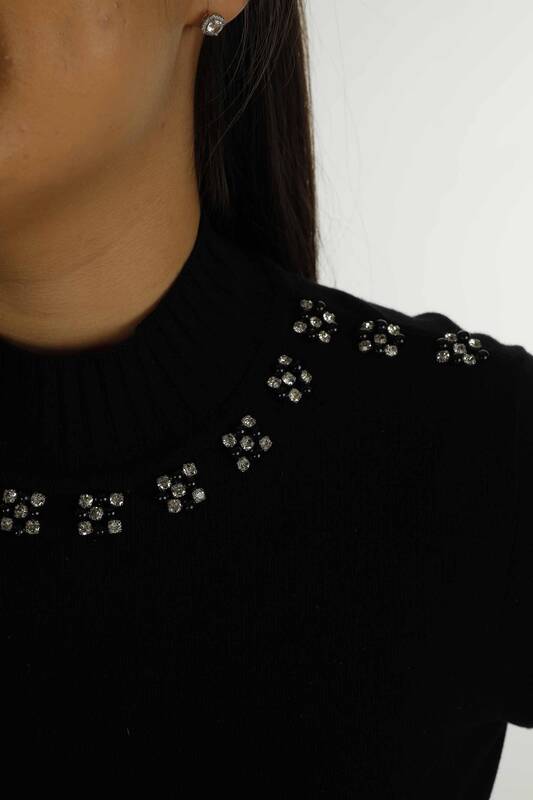 Dik Yaka Uzun Kol Taşlı Triko Siyah- 31024 | KAZEE