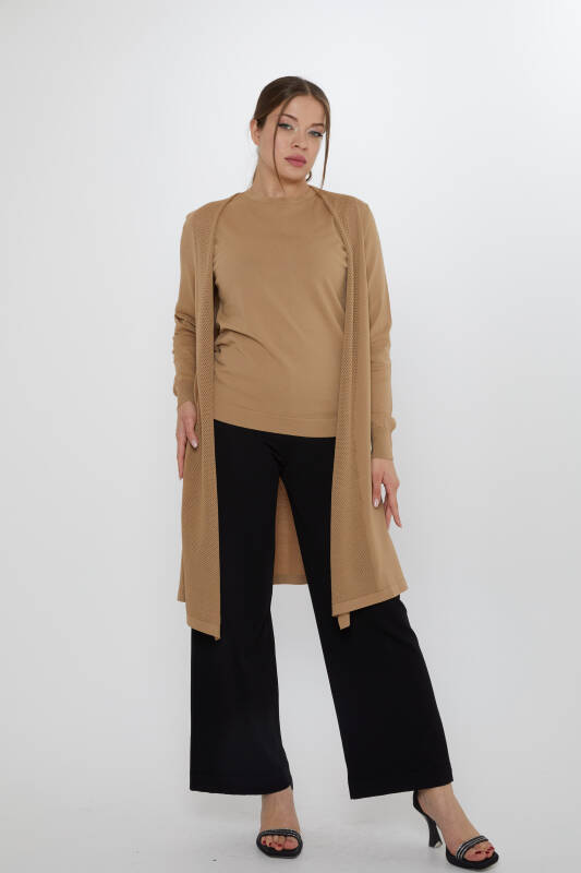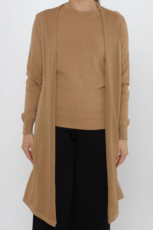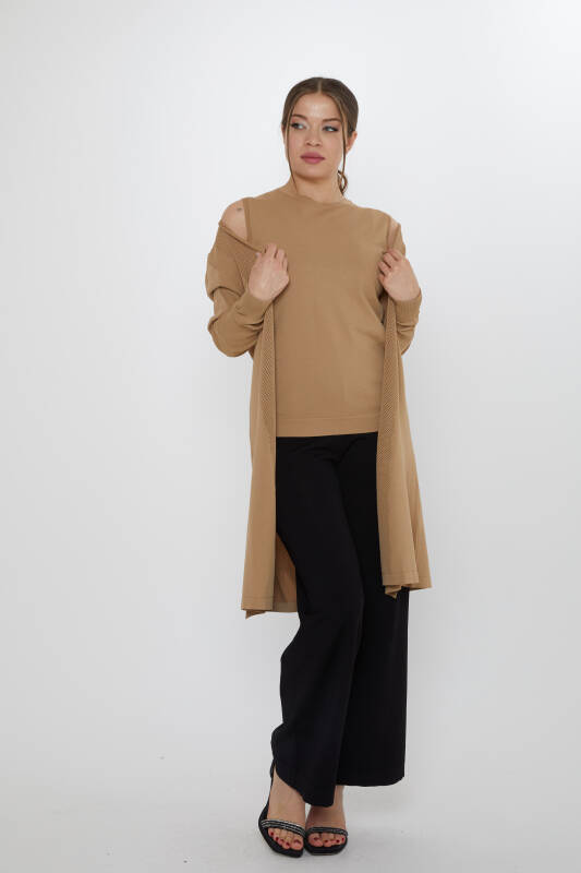 Two-Piece Set: Strappy Blouse and Openwork Cardigan, Mink - 31842 | KAZEE (2-Piece Set M-L)