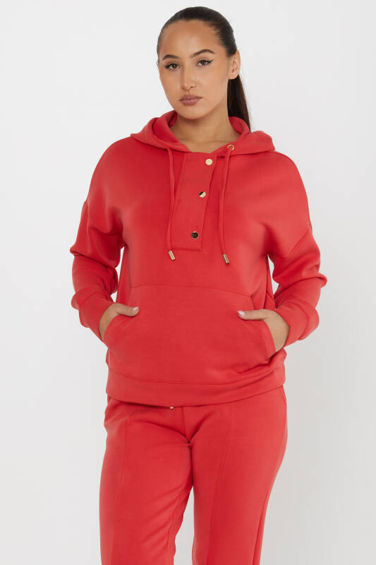 Komplet dresowy z kapturem i kieszeniami Czerwony - 17627 | KAZEE (zestaw 4 sztuk S-M-L-XL)