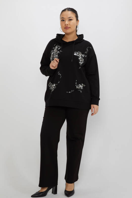 Komplet dresowy z kapturem i haftowanymi kamieniami w kolorze czarnym - 17897 | KAZEE (zestaw 3 sztuk M-L-XL)