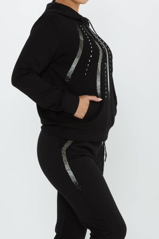Komplet dresowy z kapturem haftowanym w kamienie w kolorze czarnym - 17597 | KAZEE (zestaw 4 sztuk M-L-XL-2XL)