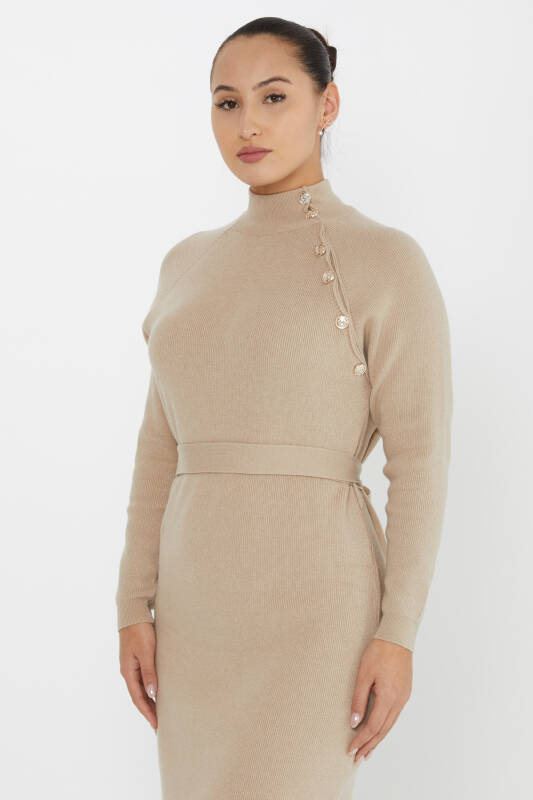 Kleid mit Knöpfen, Taillenband, langen Ärmeln, Beige – 30283 | KAZEE (4er-Set S-M-L-XL)