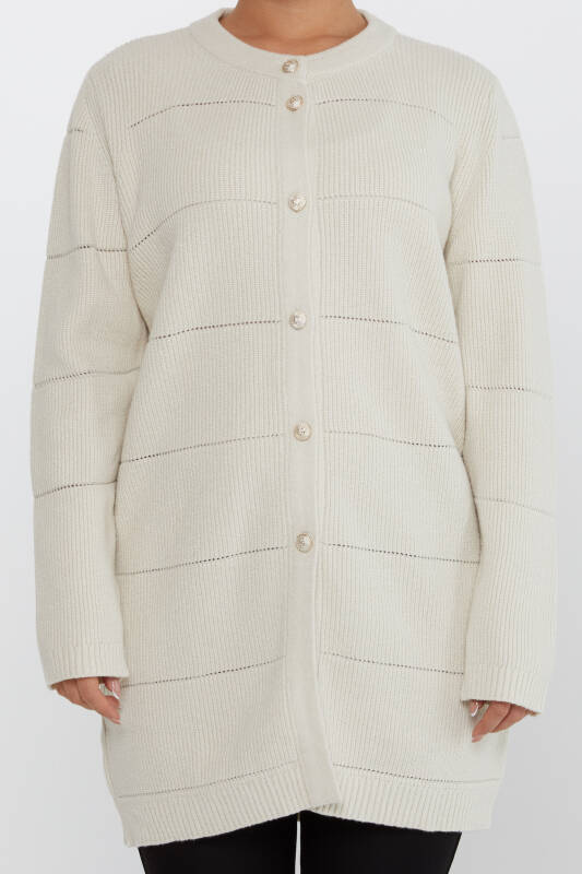 Dzianinowy kardigan z guzikami Szczegółowo perforowany Ecru - 30643 | KAZEE (zestaw 3 sztuk M-L-XL)