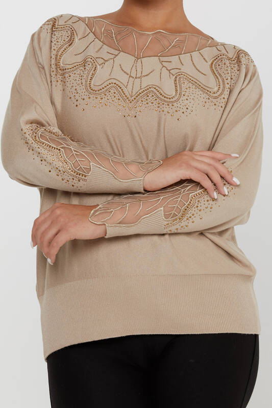 Sweter z dzianiny, haftowany kamieniami, tiulowa, szczegółowa norka - 31227 | KAZEE (zestaw 3 sztuk L-XL-2XL)