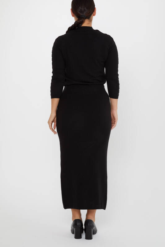 Spódnica z dzianiny Kamienna Haftowana Długa Elastyczna Czarna - 31031 | KAZEE (zestaw 4 sztuk M-L-XL-2XL)
