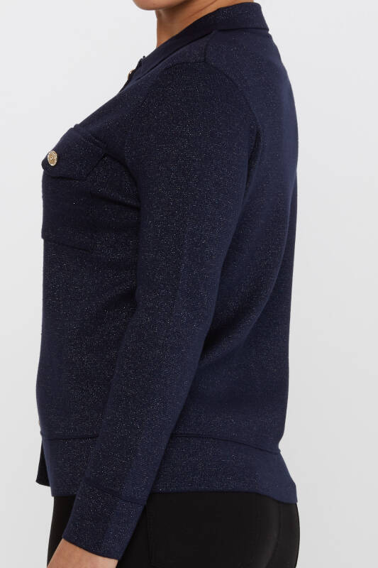 Dzianinowy kardigan z kieszeniami i guzikami Granatowy - 30693 | KAZEE (zestaw 4 sztuk M-L-XL-2XL)
