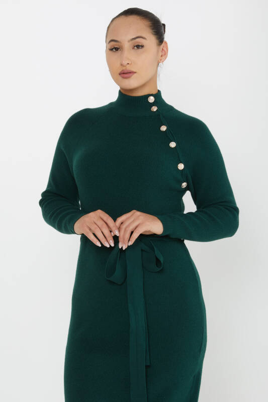 Elbise Düğme Detaylı Belden Bağlamalı Uzun Kollu Nefti - 30283 | KAZEE (4'lü Set S-M-L-XL)