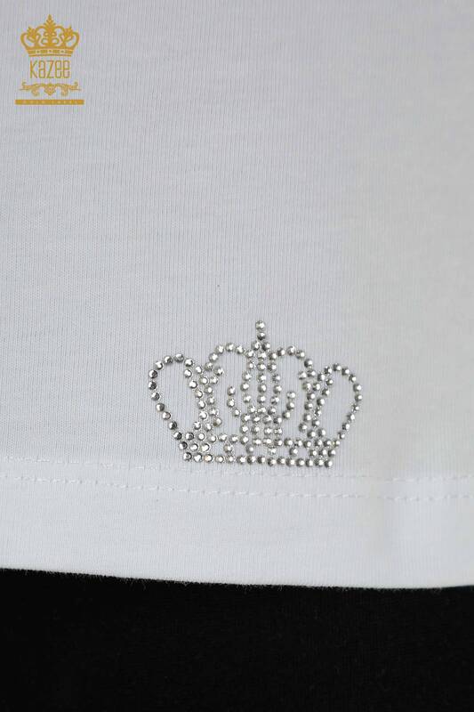 Bluză de damă cu ridicata cu mânecă scurtă cu logo alb - 79560 | KAZEE
