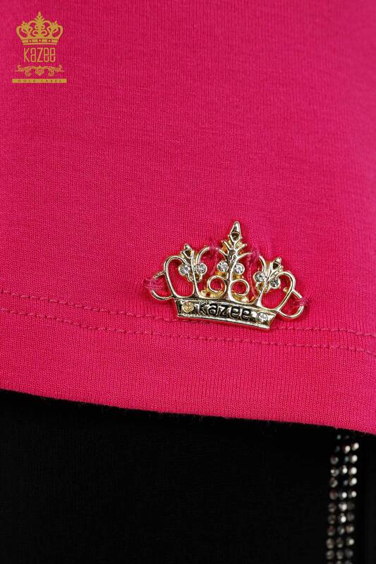 Bluză de damă cu ridicata cu mânecă scurtă Logo Fuchsia - 79219 | KAZEE