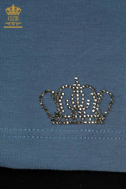 Bluză cu mânecă scurtă pentru femei cu decolteu în V brodat cu piatră Indigo - 79561 | KAZEE