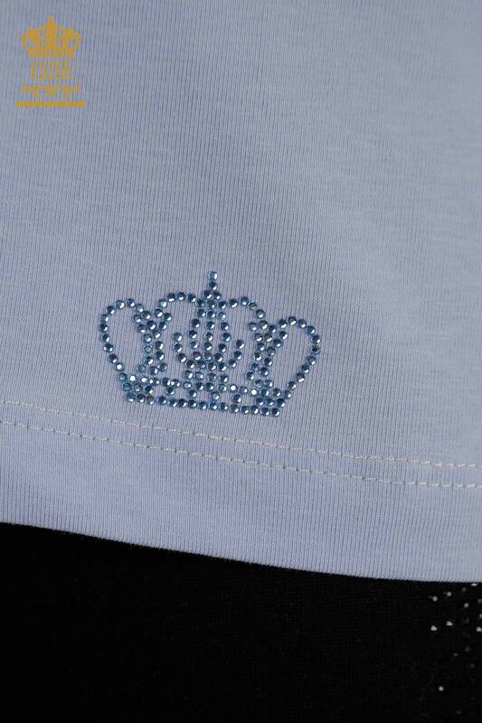 Bluză de damă cu mânecă scurtă, cu decolteu în V, brodat cu piatră, liliac - 79561 | KAZEE