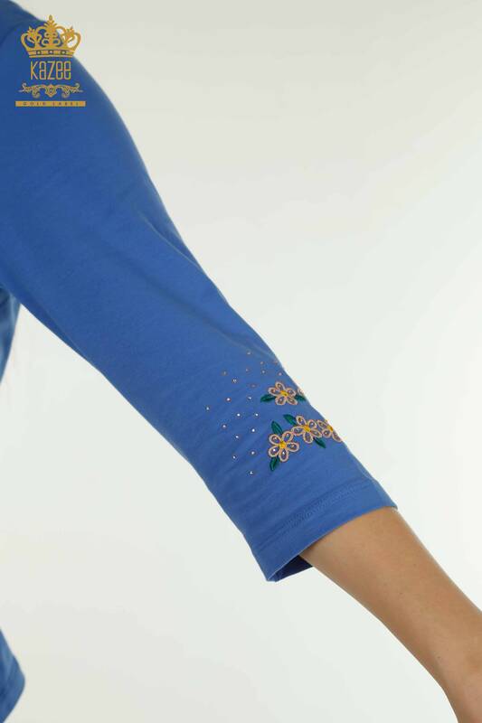 Bluză cu ridicata pentru femei, cu buzunar, cu modele de flori, brodate cu piatră - 79477 | KAZEE