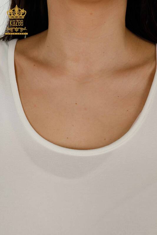 Bluză de damă cu ridicata fără mâneci Logo de bază Ecru - 79262 | KAZEE