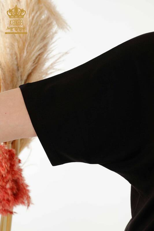Bluză de damă cu ridicata cu model leopard brodat cu piatră neagră - 77648 | KAZEE