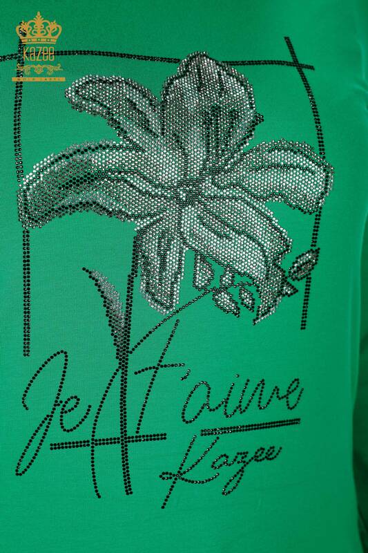 Bluză de damă cu ridicata cu model de flori brodate verde - 79014 | KAZEE