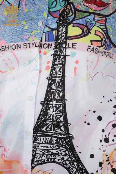 Cămașă cu ridicata pentru femei cu imprimeu digital brodat cu piatră - 20362 | KAZEE