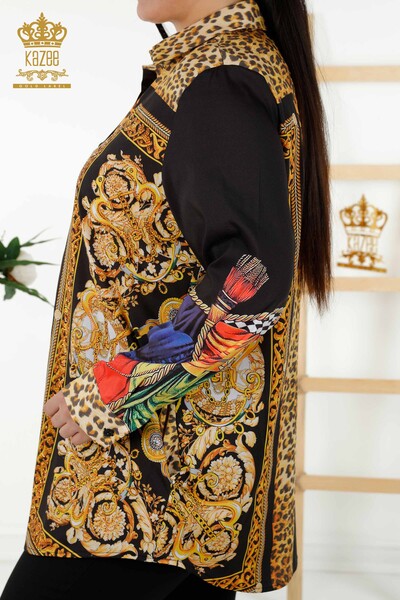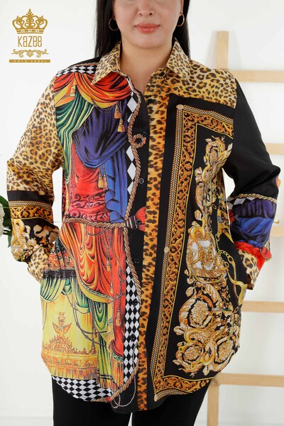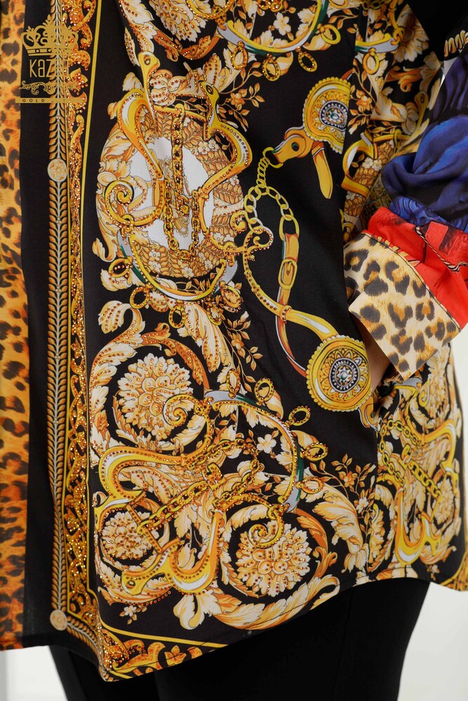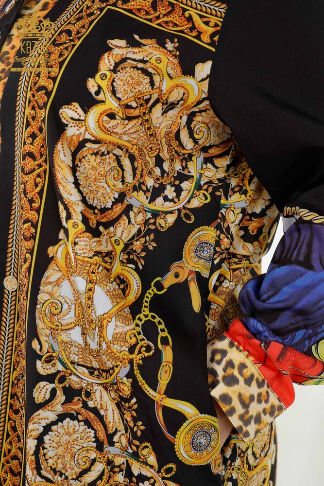 Cămașă de damă cu ridicata cu imprimeu digital brodat cu piatră - 20357 | KAZEE