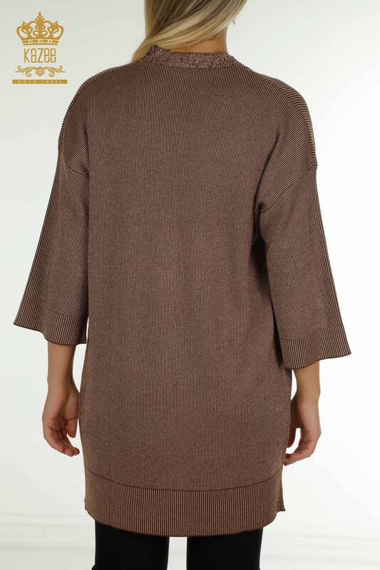 Cardigan de damă cu ridicata cu buzunar cu sclipici Maro - 30135 | KAZEE
