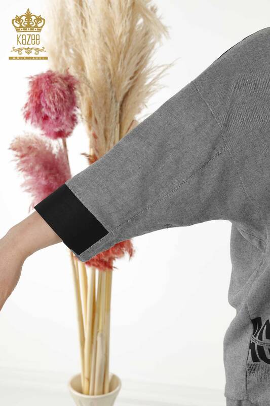 Set cămașă de damă cu ridicata Antracit de buzunar cu model - 20332 | KAZEE
