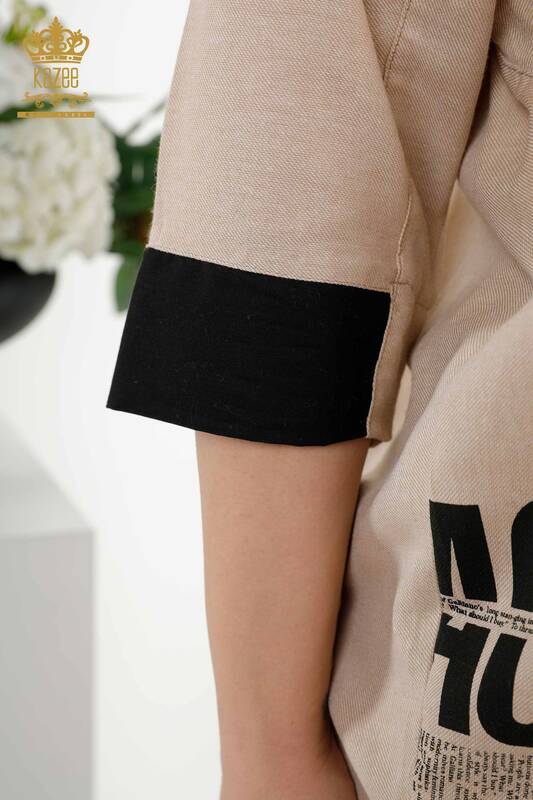Set cămașă de damă cu ridicata cu buzunar bej - 20332 | KAZEE