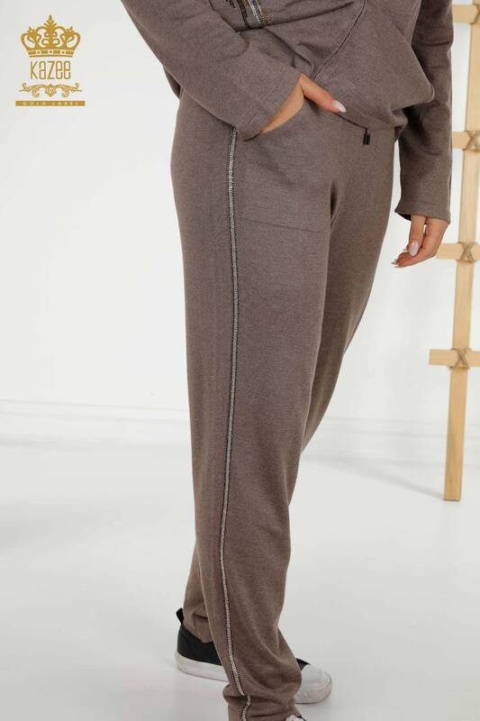 Set de trening cu ridicata pentru femei, cu model de leopard, cu fermoar, brodat de piatră, nurcă - 16660 | KAZEE