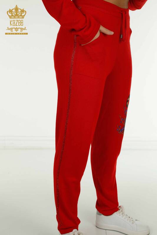 Set de trening cu ridicata pentru femei, broderie cu piatra, cu fermoar, roșu cu model leopard - 16662 | KAZEE