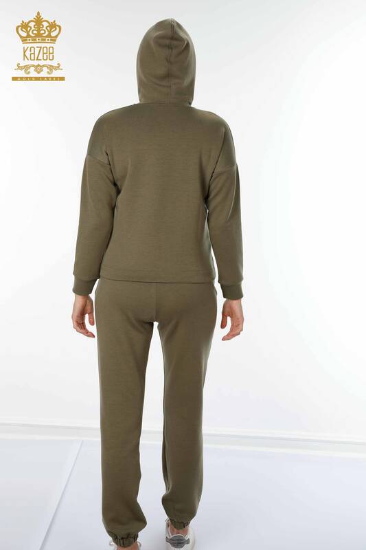 Set de trening pentru femei cu glugă, buzunar, brodat kaki, cu piatră - 17426 | KAZEE