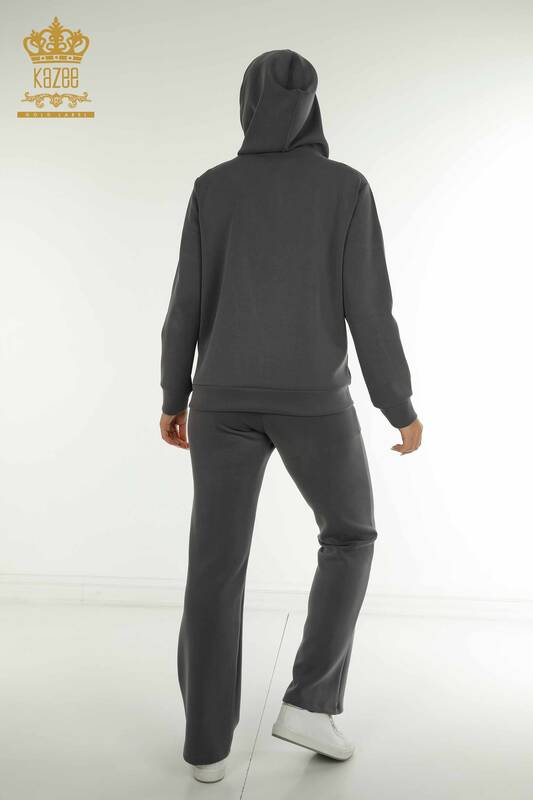 Set de trening pentru femei cu glugă, cu fermoar, brodat cu piatră gri - 17618 | KAZEE
