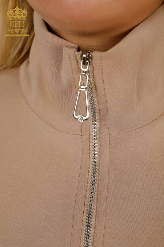Set de trening pentru femei cu ridicata cu buzunare cu fermoar Bej - 17619 | KAZEE