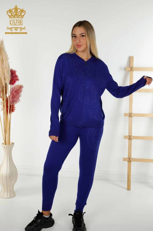Set de trening cu ridicata pentru femei, cu fermoar, brodate cu piatra, saci de buzunar - 16276 | KAZEE