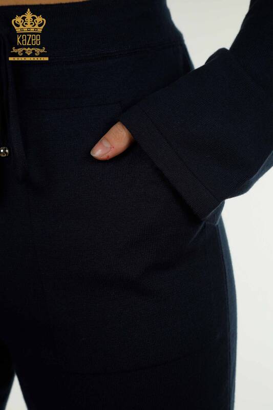 Set de trening pentru femei, cu ridicata, brodat cu piatra, cu fermoar, cu model leopard, bleumarin - 16662 | KAZEE
