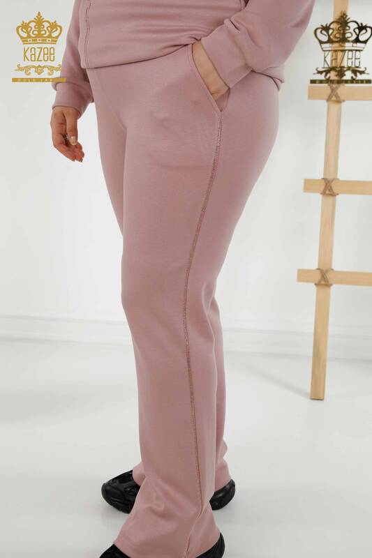 Set de trening pentru femei cu buzunare, trandafir brodat cu piatra - 20398 | KAZEE