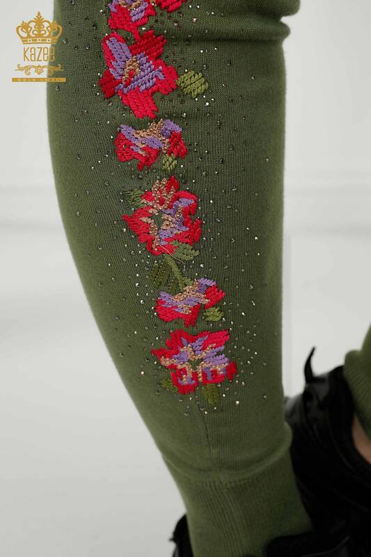 En-gros Set de trening damă cu model de flori brodate kaki - 16658 | KAZEE