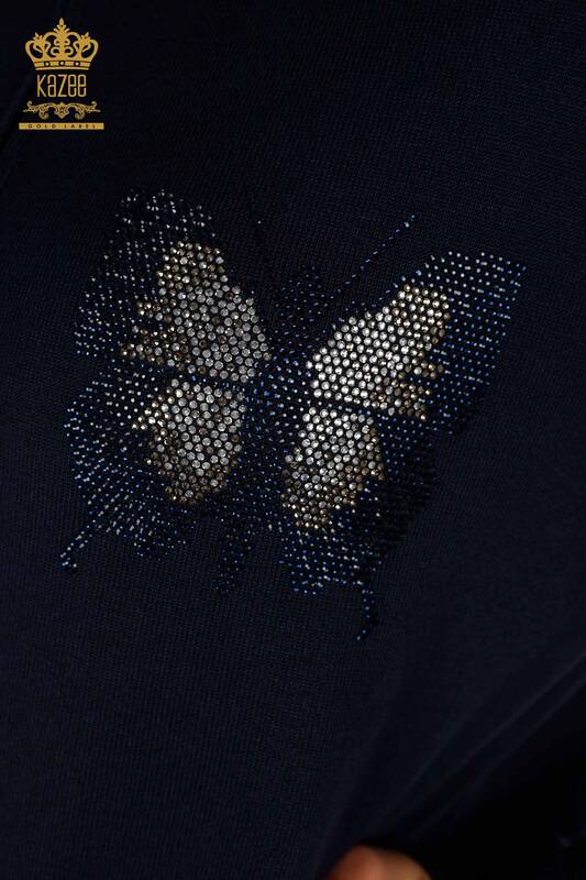 Set de trening cu ridicata pentru femei, cu model de fluture, brodat cu fermoar, albastru bleumarin - 16678 | KAZEE