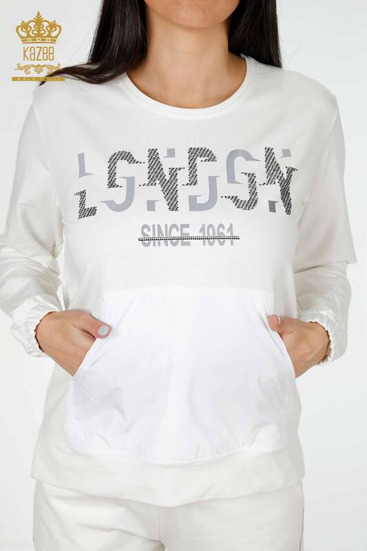 Set de trening en-gros pentru femei cu detaliu text și buzunare - 17444 | KAZEE