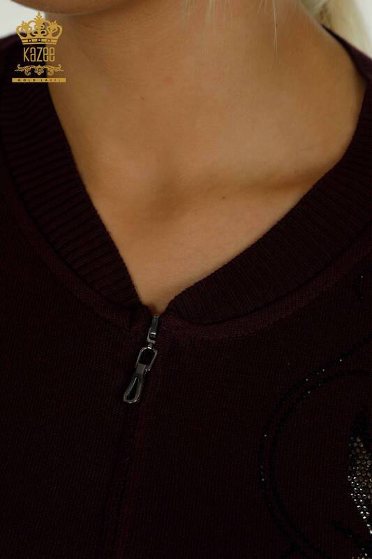 Set de trening cu ridicata pentru femei, cu modele florale, cu fermoar cu buzunare, prune - 16661 | KAZEE