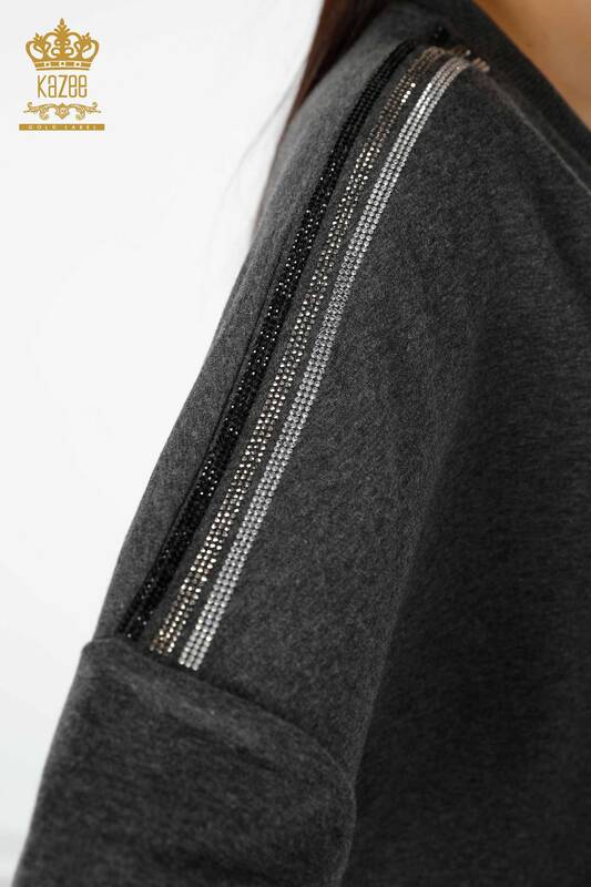 Set de trening en-gros pentru femei, detaliat tigru, brodat cu piatra, antracit de buzunar - 17459 | KAZEE