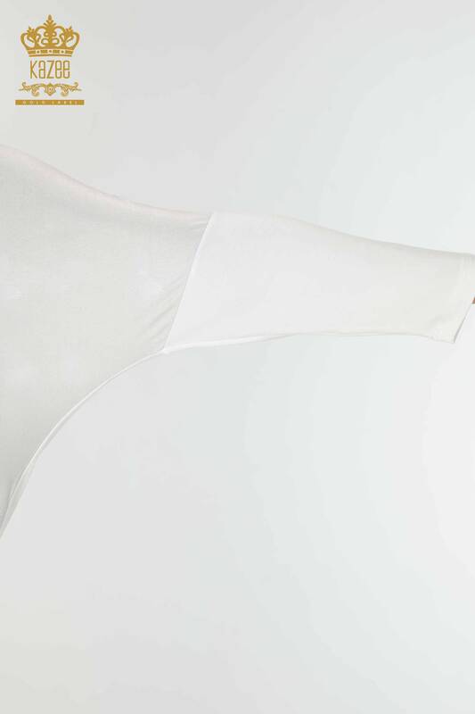 Bluză de damă cu ridicata cu model brodat cu piatră Ecru - 75923 | KAZEE