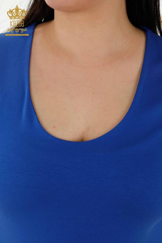 Bluză de damă cu ridicata Basic Logo cu mânecă scurtă Saks - 79190 | KAZEE