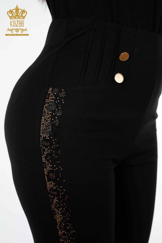Cu ridicata Jambiere de damă Pantaloni Button Detaliat Leopard Stone Brodat Negru - 3426 | KAZEE