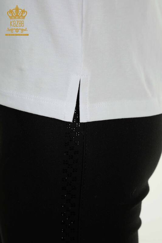 Bluză cu ridicata pentru femei, cu buzunar, cu model floral, brodat cu piatră, alb - 79477 | KAZEE