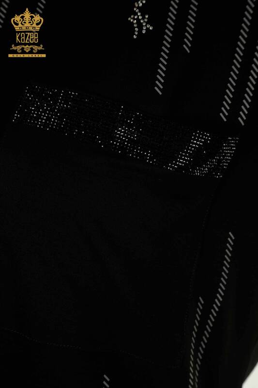 Bluză de damă cu ridicata cu buzunar brodat cu piatră neagră - 79140 | KAZEE