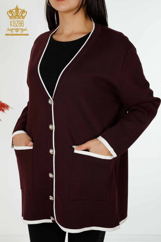 Cardigan cu ridicata pentru femei, cu buzunar cu nasturi, prune - 30148 | KAZEE